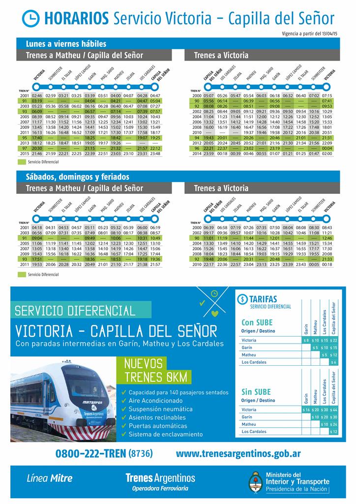Nuevos horarios y tarifas incluyendo el servicio diferencial del Servicio Victoria - Capilla del Señor #LíneaMitre